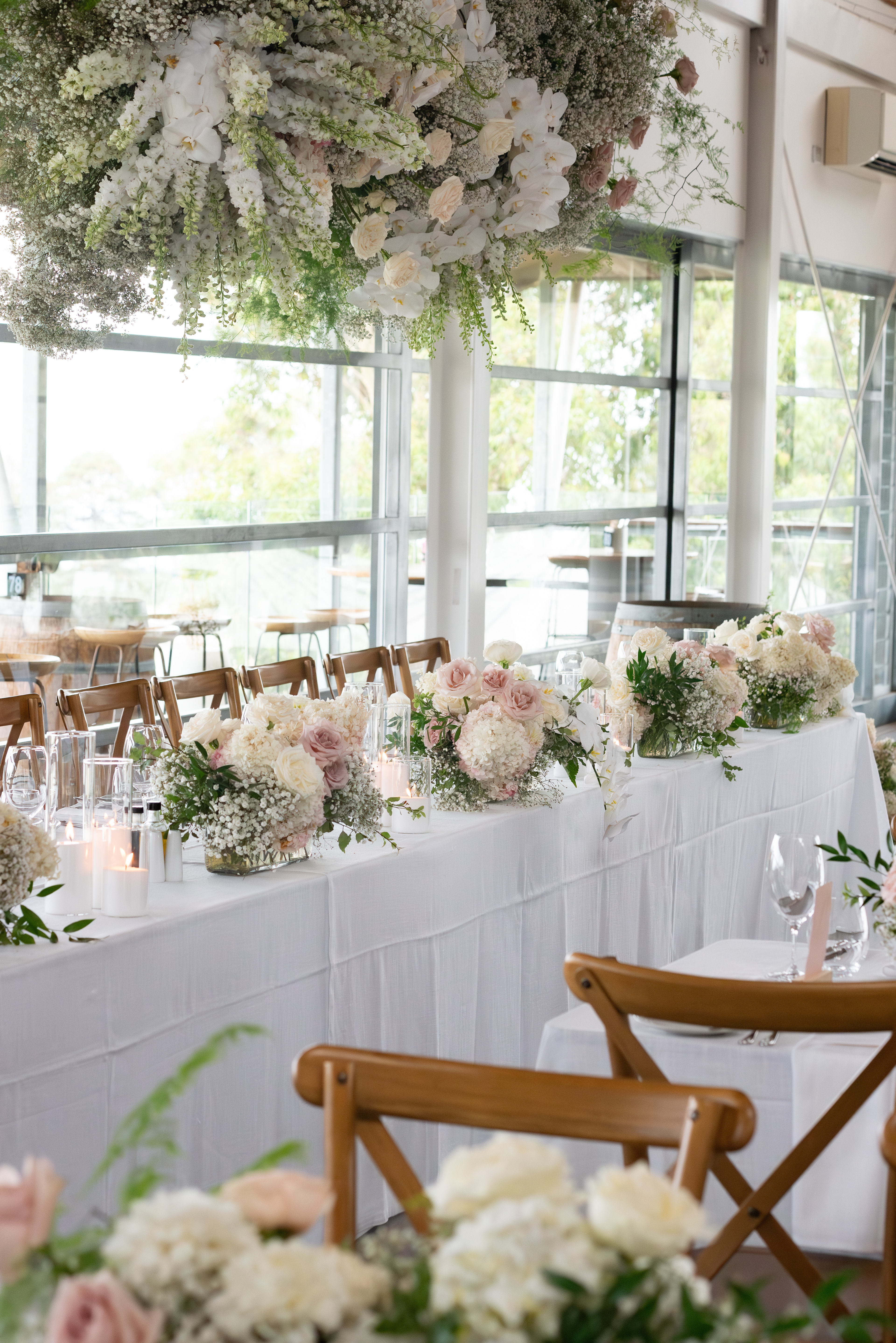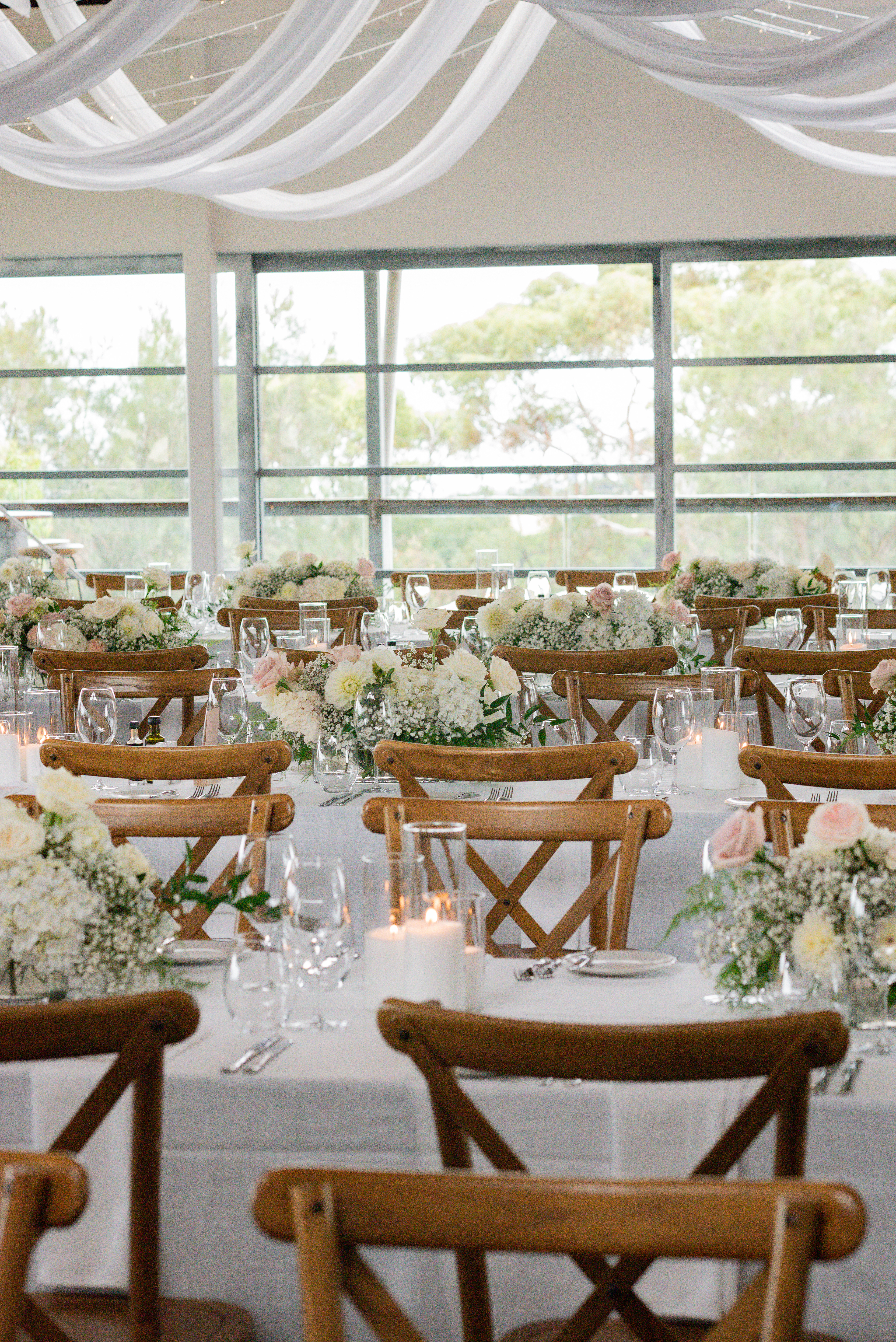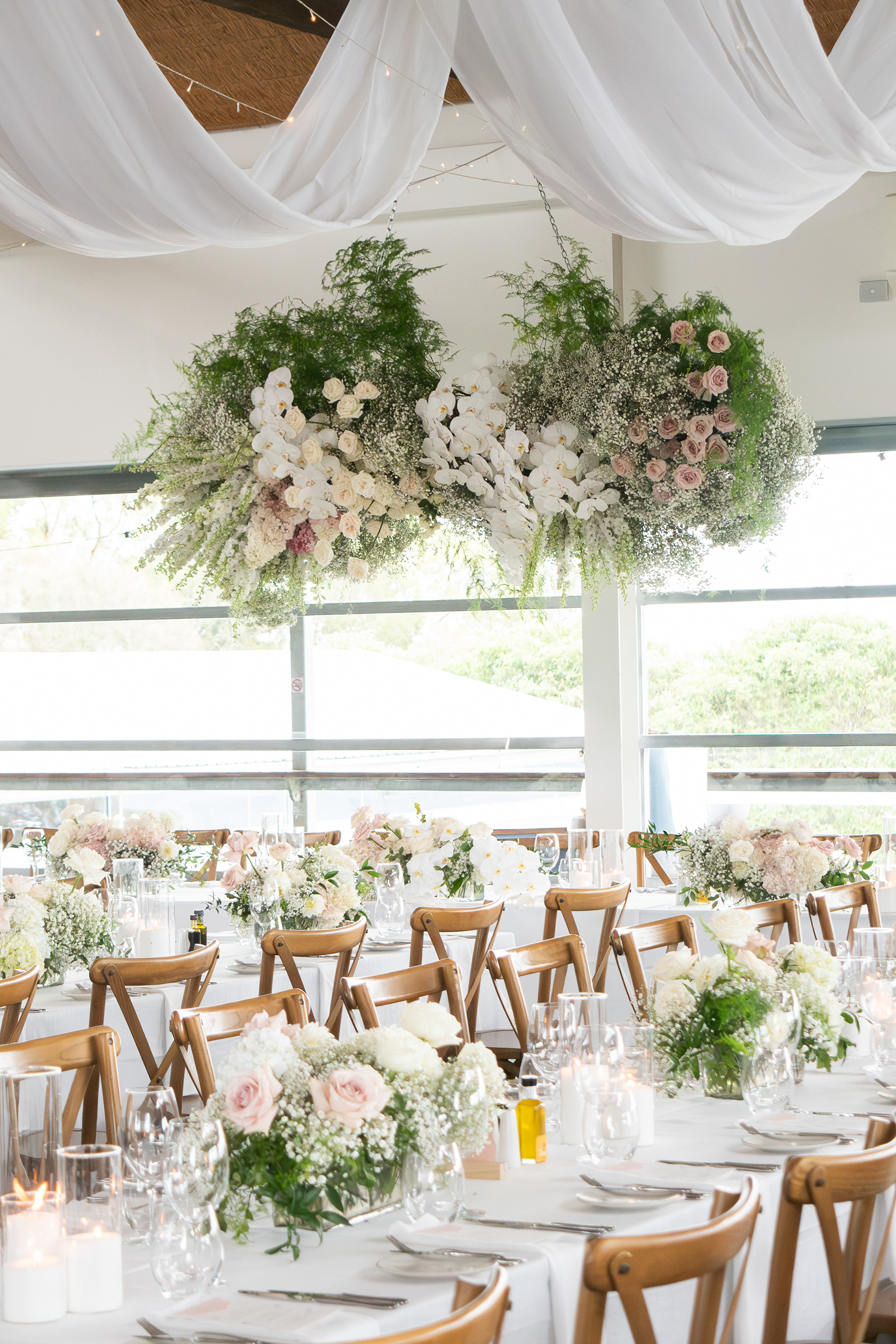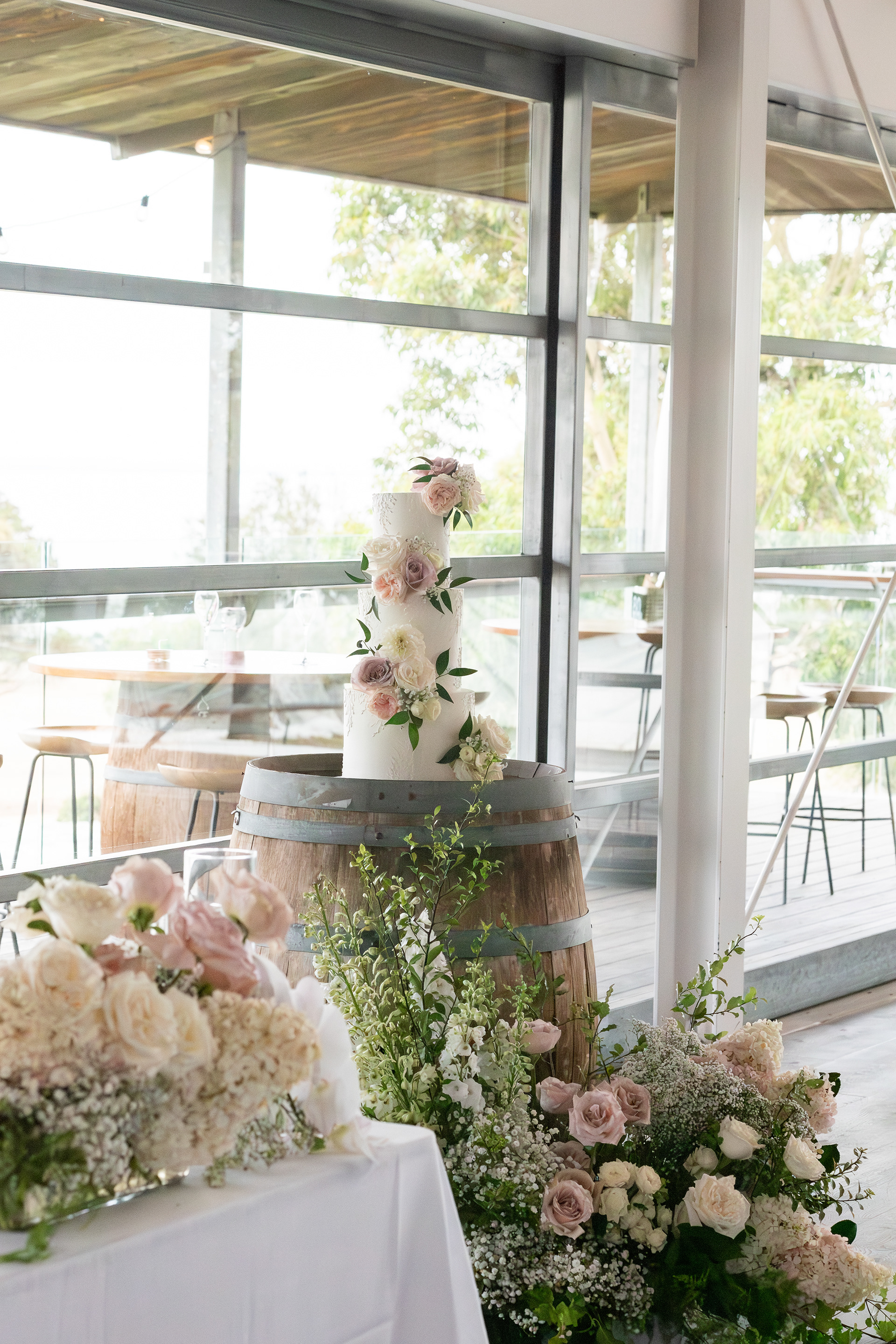 Wedding Reception Room Florals - florist: The Posie Place, cake artist: Nata Cakes, venue: Terindah Estate, Bellarine