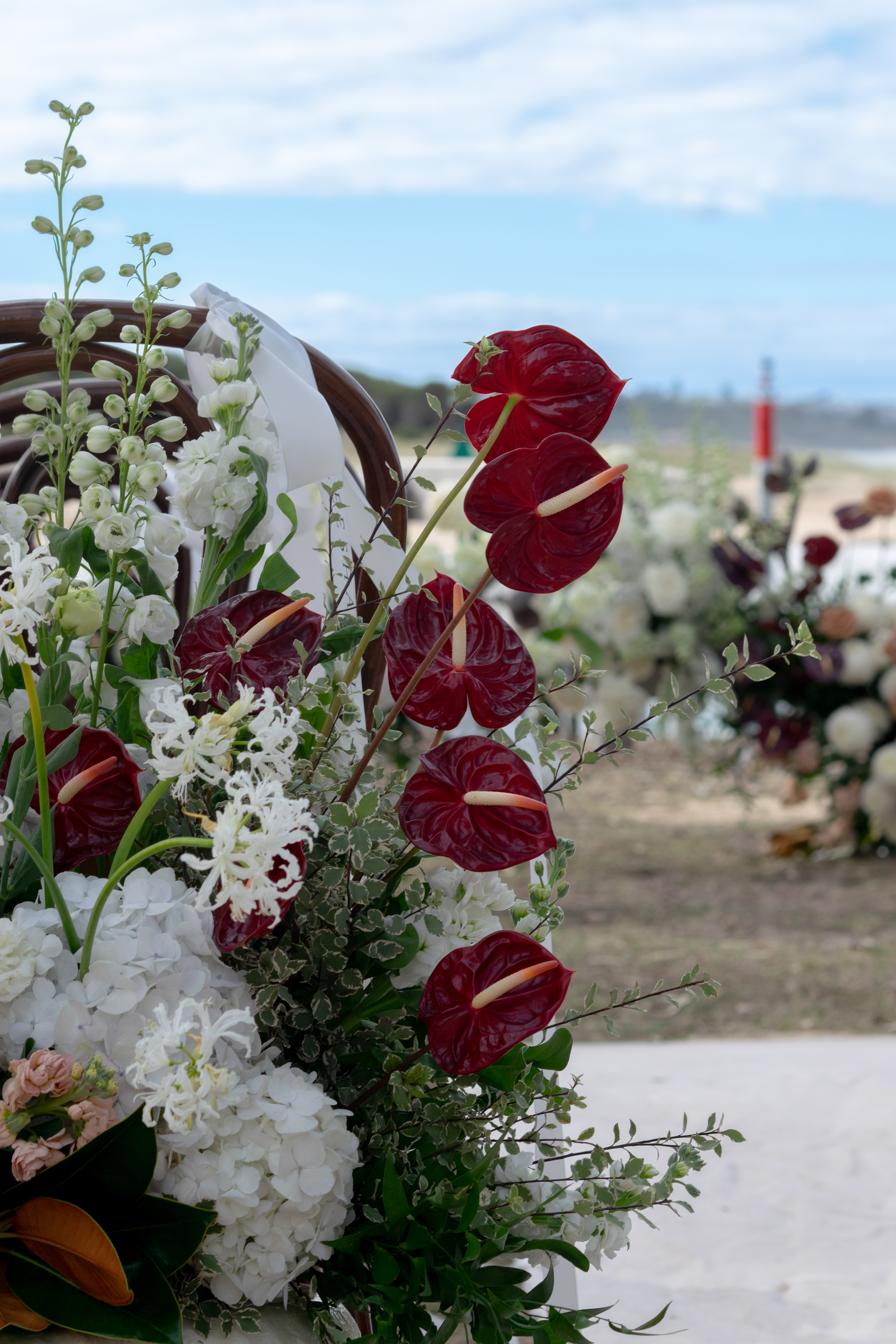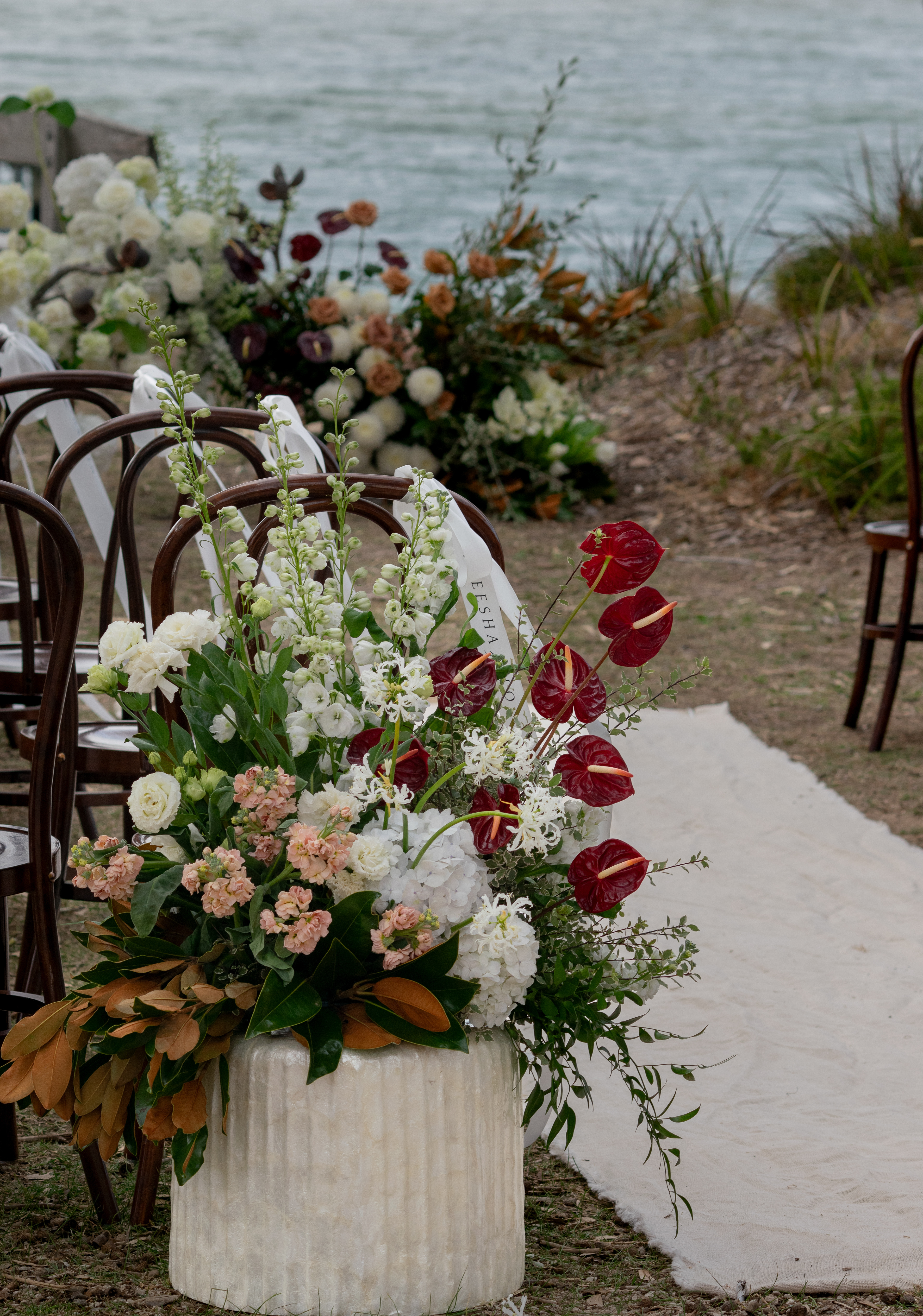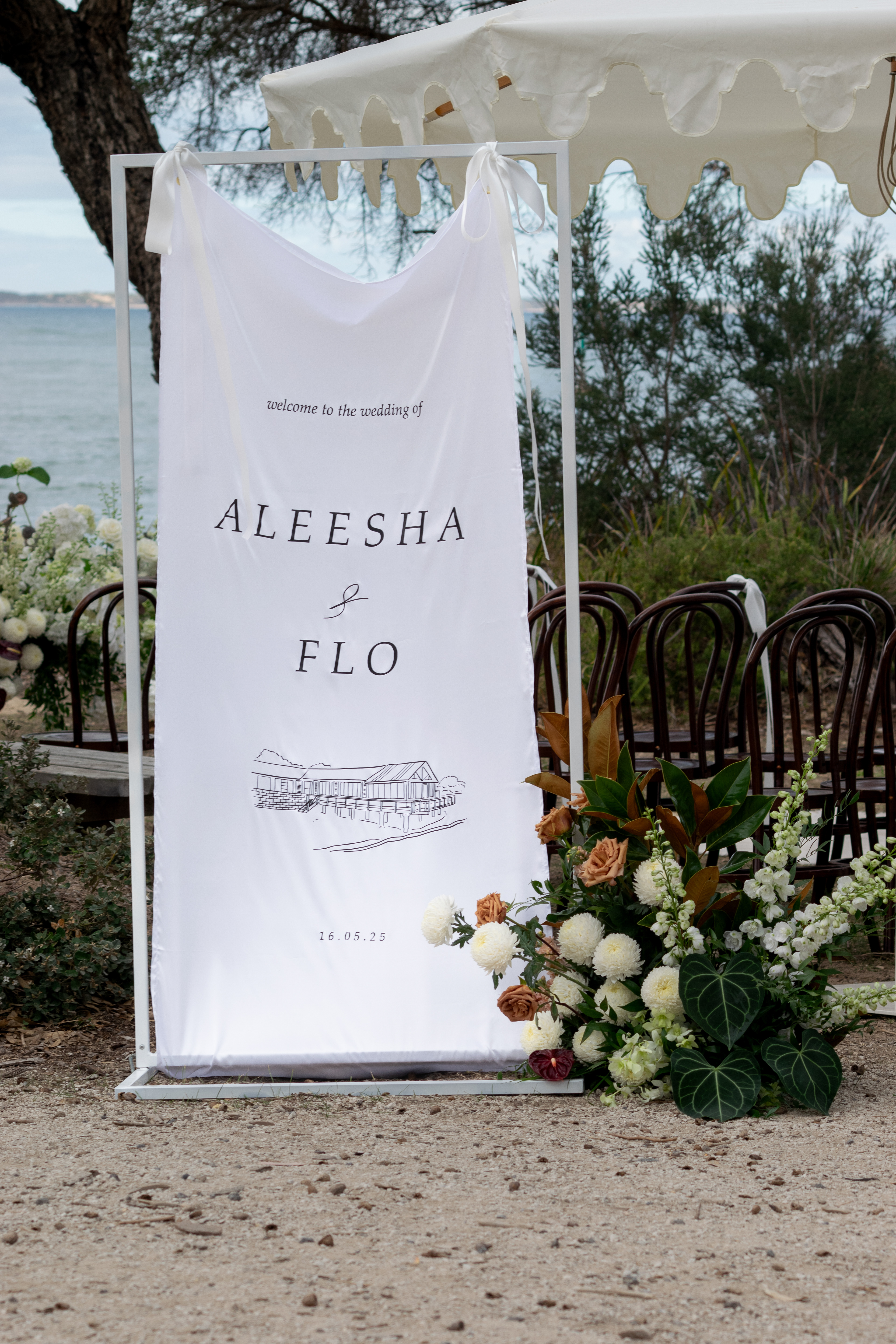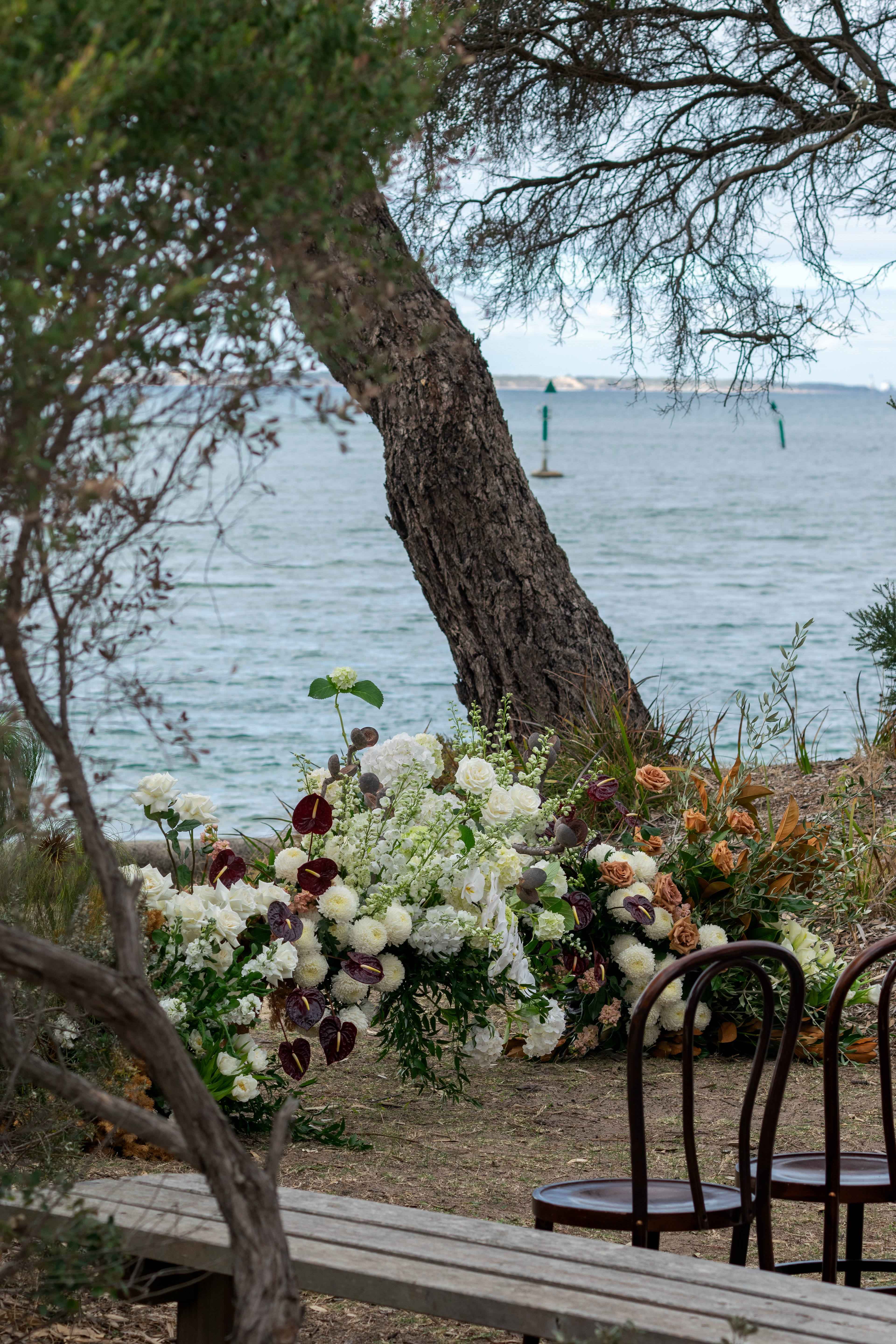 Wedding Ceremony & Reception Florals - florist: Florette, outdoor furniture hire: Dress My Wedding, venue: At The Heads, Barwon Heads
